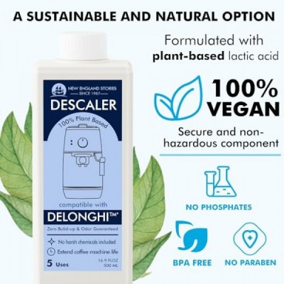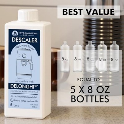New England Stories Delonghi Compatible Descaling Solution, Specially Designed to Clean Delonghi Machines, 2 Bottle Liquid Descaler (10 Uses Total)