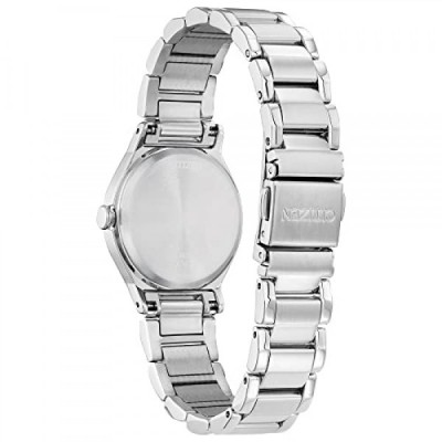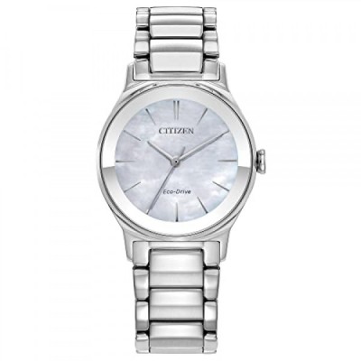 Citizen 여성용 에코드라이브 Axiom 실버 스테인레스 스틸 시계, 블루 자개 다이얼, 28mm (모델: EM0731-54N)