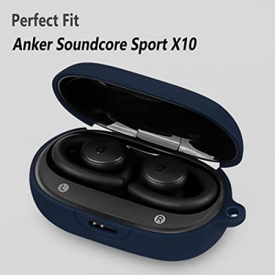 Anker Soundcore Sport X10과 호환되는 Geiomoo 실리콘 케이스, 카라비너가 있는 보호 커버(네이비 블루)