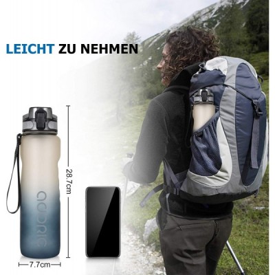 ADORIC Sport-Wasserflasche, 1 l, 500 ml, BPA-frei, Tritan, ungiftiger Kunststoff, Sport-Wasserbecher, langlebig, auslaufsicher, mit Filter, Klappdeckel Gradient Gradient Gray, 1000 Ml