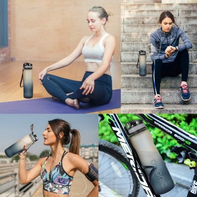 ADORIC 스포츠 물병 1L 500ml BPA 무료 Tritan 무독성 플라스틱 스포츠 워터 컵 내구성 누출 방지 필터 플립 탑 그라디언트 그레이 1000ml