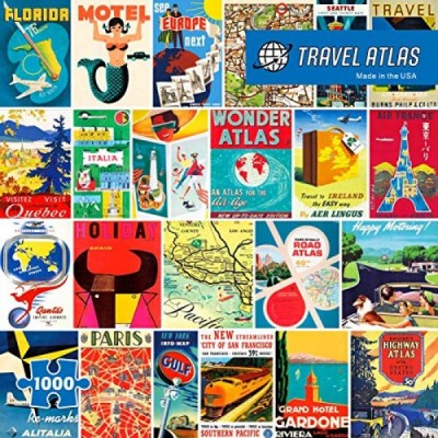 Re-marks Travel Atlas Retro 1000-Piece Jigsaw Puzzle for All Ages