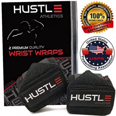 Hustle Athletics Wrist Wraps Weightlifting - Best Support For Gym & Crossfit - Brace Your Wrists To Push Heavier, Avoid Injury & Improve Your Workout Instantly - For Men & Women