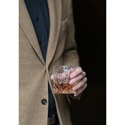 Viski Admiral 크리스탈 위스키 텀블러 4개 세트 - 프리미엄 크리스탈 클리어 주류 마시는 잔, 클래식 로우볼 칵테일 잔 선물 세트, 9온스