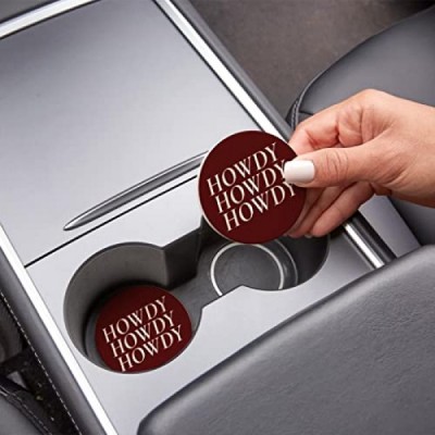 현대적 미니멀리스트 텍사스 마룬 하우디(Texas Maroon Howdy), Joyride 홈 데코, 세라믹 자동차 컵받침 2개, 2.65인치 원형 컵받침, 2개 세트, 차량 액세서리, 자동차 컵 홀더를