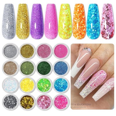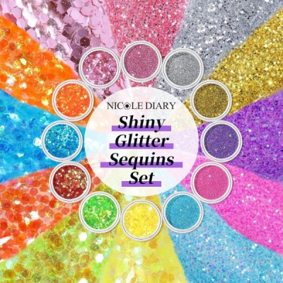 NICOLE DIARY 48 Colors Glitter for Nails, 글리터 파우더 세트 파인 글리터 파우더 글리터 파우더 스팽글 네일 디자인 액세서리 네일 용 글리터 DIY 네일 아트 48 색 글리터 세트