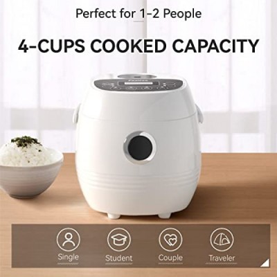 FEEKAA 소형 밥솥 2컵, 미니 일본 밥솥, 6-in-1 휴대용 슬로우 쿠커, 여행용 밥솥, 수프 메이커, 스튜 냄비, 보온 및 지연 타이머, 흰색, 1.2L