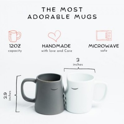 Kissing Couple Mugs Set - For Anniversary, Wedding, Engagement or Housewarming- Cute Unique Romantic Matching Ceramic Coffee Cups Gift - Mr and Mrs Present for Husband, Wife, Girlfriend, Boyfriend