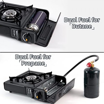 SHINESTAR Dual Fuel Stove with Butane & Propane Compatibility, Portable Camping Stove for Outdoor Cooking, Propane Adapter Hose and Carrying Case Included, 7800 BTUs Output