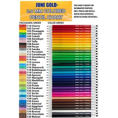 June Gold 36 Black (Raven #108) Colored 2.0 mm (NOT GRAPHITE) Lead Refills, Bold Thickness for Heavy Use, Break Resistant with a Convenient Dispenser