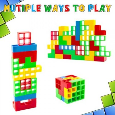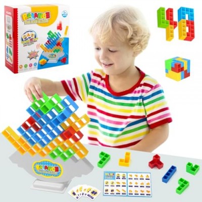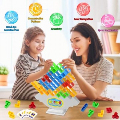 LUYITOM 48 PCS Tetra Tower Game Stack Attack Toys Building Puzzle Board Games Gift for Kids Adult, Balance Stacking Toys Develops Thinking Patience Perfect for Family Party Game