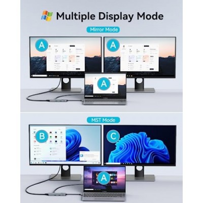 MOKiN USB C 도킹 스테이션 듀얼 모니터, USB C-듀얼 HDMI 어댑터, 2개의 HDMI(4K @60Hz)가 포함된 8 in 1 노트북 도킹 스테이션, PD 충전, USB A&C 3.0 포트, Dell/HP/Lenovo/Surface/용 SD/TF 요