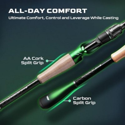 Magic Soul Fishing Rod, Fuji A-Ring Guides, 2-Piece BFS Spinning and Casting Rod, Toray 30 Ton+36 Ton Carbon Fiber Blank, Cork+Carbon Split Grip Handle, for Bass, Crappie, Walleye Etc.