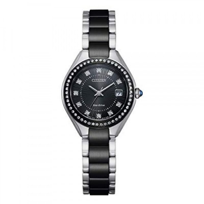 씨티즌 에코드라이브 Crystal Black 다이얼 여성용 시계 EW2558-88E