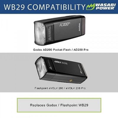 Wasabi Power WB29 Battery for Godox WB29, WB29a, WB29b and Godox AD200 Pro, AD200, AD300 Pro, Flashpoint eVOLV 200 and eVOLV 200 Pro Strobe Flash