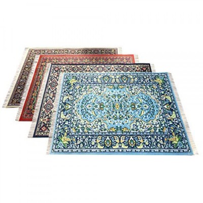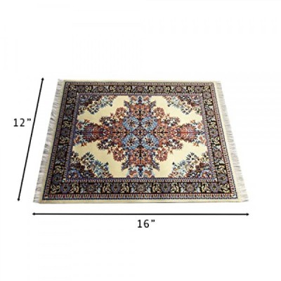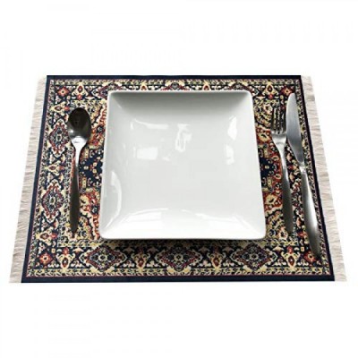 Rug placemats, Set of 4, Oriental Carpet Style Table Setting Decor, Decorative Fabric Dinner mats, Miniature Turkish Colorful Design, Washable, Rectangular, 16x12