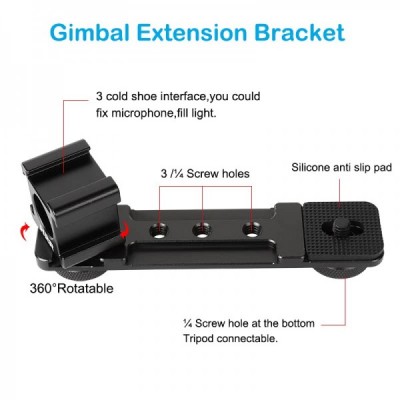 PellKing 트리플 콜드 슈 연장 바, GoPro, 짐벌, 삼각대, 모노포드 OSMO Zhiyun Feiyu Stabilizer와 호환되는 1/4어댑터가 있는 마이크 마운트 연장 바 브래킷