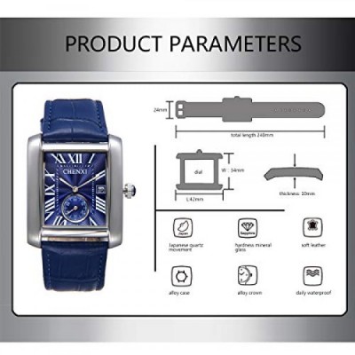 JewelryWe 남성용 레트로 캘린더 아날로그 쿼츠 시계(직사각형 로마 숫자 다이얼 및 가죽 스트랩 포함) 색상: 블랙, 블루, 브라운
