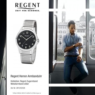 Regent Men's Analogue Quartz Watch with Stainless Steel Strap 11310063, silver/black, Bracelet