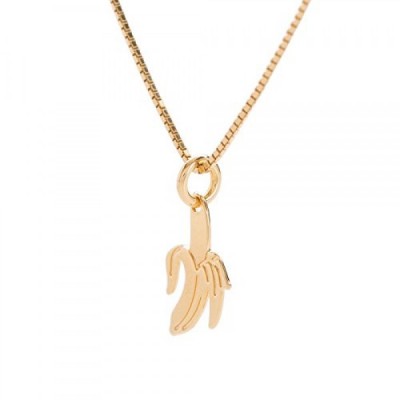 Malaika Raiss N3141 Women's Gold Banana Pendant Necklace Brass 24 Carat Gold-Plated, Brass, Raiss