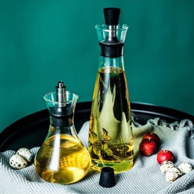 ALIXIN-Olive Oil Dispenser.Glass Bottles and Pourer Spout Set for Kitchen,Oil & Vinegar Cruet/Decanter,with Dripless Capped Spout,Liquid Condiment Container,Glass Decanter for Kitchen. (550ML)