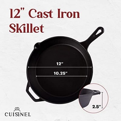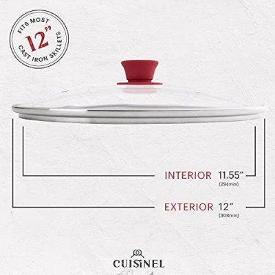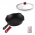 Cast Iron Skillet - 12"-Inch Frying Pan with Assist Handle and Pour Spots + Silicone Grip Cover + Glass Lid with Steam Vent Hole - 12"-Inch/30.48-cm - Compatible with Lodge Cast Iron Skillet Pan