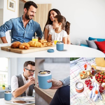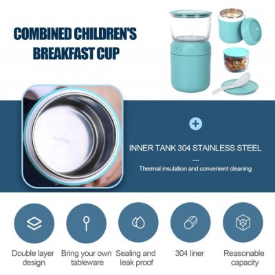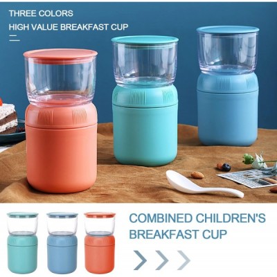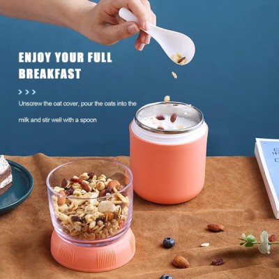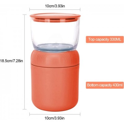 ADLOASHLOU muesli 컵 테이크 아웃 430ml + 요거트 컵 330ml 누수 방지 2 in 1 도시락 상자와 신선한 식사를 위한 숟가락 어린이 간식 냄비 (오렌지 레드-PP)