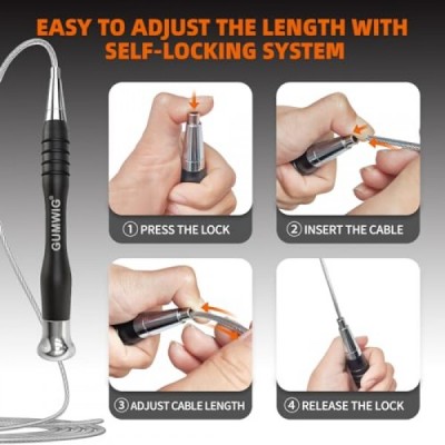 Gumwig 스피드 줄넘기, 남성용 탈착식 가중 더블 언더 줄넘기, 여성용 트레이닝 줄넘기, 자동 잠금 시스템으로 길이 조절이 용이함, 성인용 크로스핏 피트니스