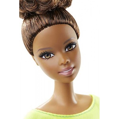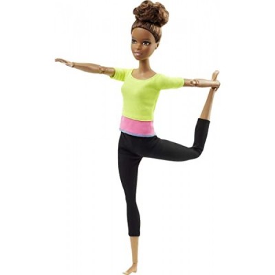 Barbie Made to Move Posable Doll in Green Color-Blocked Top 및 Yoga Leggings, Flexible with Brown Hair Yellow Top