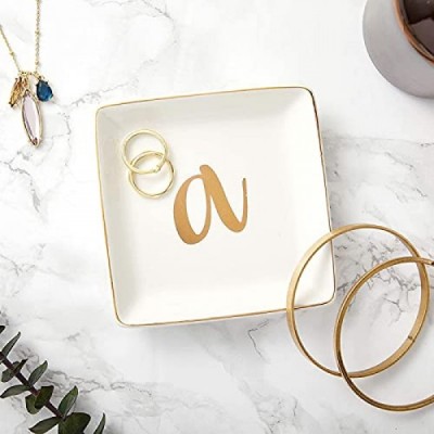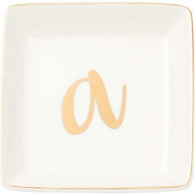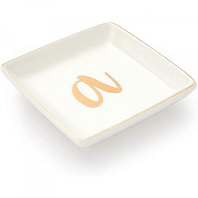 Letter A Ceramic Trinket Tray, Monogram Initials Jewelry Dish (4 x 4 Inches)