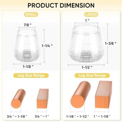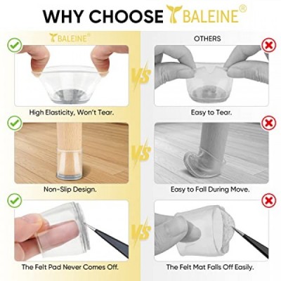 BALEINE 24팩 실리콘 의자 다리 바닥 보호대, 의자 다리 보호대 캡, 나무 바닥용 미끄럼 방지 의자 다리 캡(투명 및 소형, 24팩)