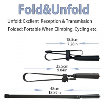 BAOFENG UV-5R Foldable Tactical Antenna for GMRS Two Way Radio 48cm/18.8inch Dual Band VHF UHF SMA-Female Long Range Portable Compatible with BF-F8HP UV-82HP DM-1701 (1pack)