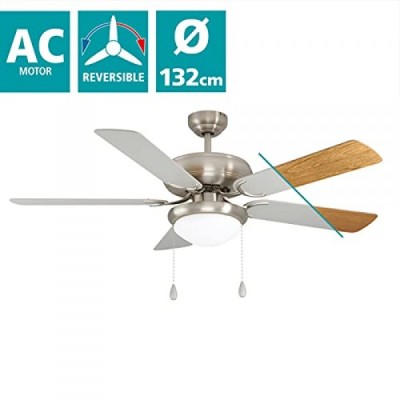 EGLO Ballina 천장 팬, 조명이 포함된 5 블레이드 팬, 풀 체인, 은색 또는 참나무 합판으로 제작된 양면 블레이드, 무광택 니켈 강철 하우징, 여름 겨울 작동, AC 모터, 직경