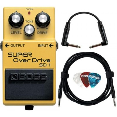 Boss SD-1 Super OverDrive Bundle with 10ft Instrument Cable, 6in Patch Cable, and Picks