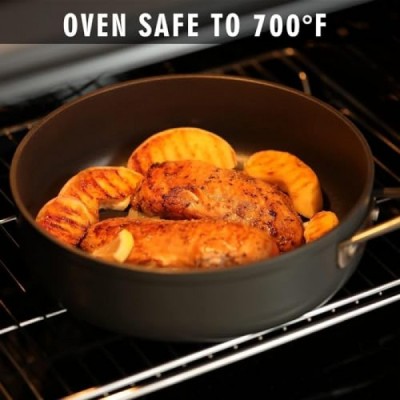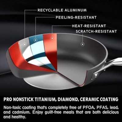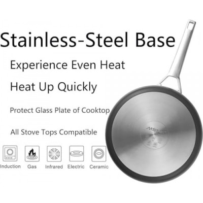 MsMk 3 Quart Deep Frying pan, Durable pans for refreshing old saute pan with lid, Deep and straight edge, Easy Clean-Up, Even Heating, Comfortable Handling, Induction Compatibility, 9.5 inch