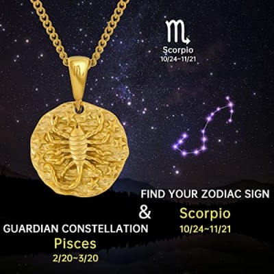 Men's Necklace with Zodiac Sign, Pendant for Men, Stainless Steel 12 Constellation Chain, Astrology Embossed Pendant Necklace, Ideal Birthday Gift Ideas for Men and Women