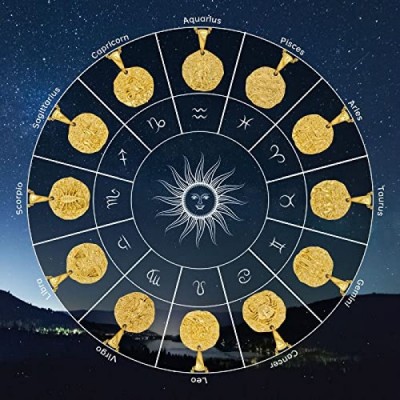 조디악 표지판이 있는 남성용 목걸이, 남성용 펜던트, 스테인레스 스틸 12 별자리 체인, 점성술 양각 펜던트 목걸이, 남성과 여성을 위한 이상적인 생일 선물 아이디어