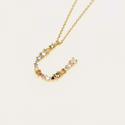 P D PAOLA - 문자 U 목걸이 - 925 스털링 실버 18k 골드 도금 - 여성용 주얼리, 18k 골드 도금, 래브라도라이트, 아쿠아마린 및 큐빅 지르코니아