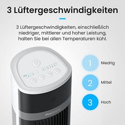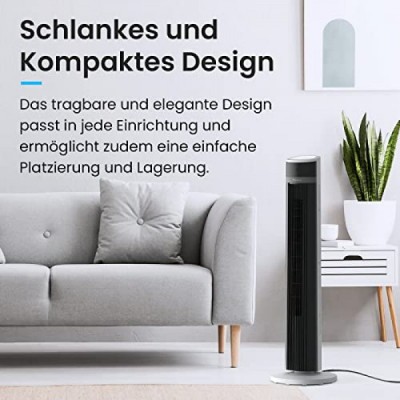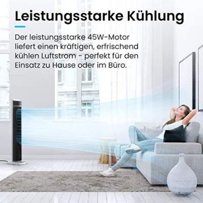 Pro Breeze™ 진동 타워 팬, 높이 100cm, 80도 진동, 3단계 속도 조절이 가능한 기둥 팬, 리모컨 및 타이머가 포함된 45W 팬