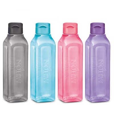 MILTON Sports Water Bottle Square Juice Box 4 Set 17 oz. Great for Juices Milk Smoothies Plastic Wide-Mouth Reusable Leak Proof Drink Bottle/Carton for School Bags Lunch Boxes Gym Flip Lid -BPA Free