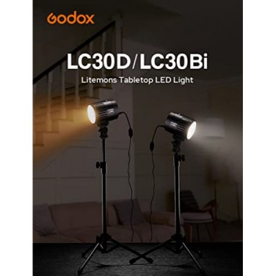 Godox LC30Bi 3200K-5600K 이중 색상 Litemons 탁상용 LED 조명, 25200LUX@0.5m, CRI 95+/TLCl 96+, 11가지 사전 설정 조명 FX 효과