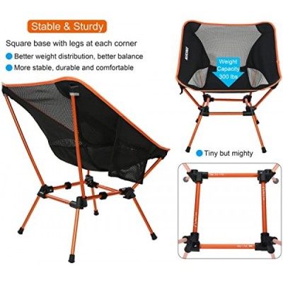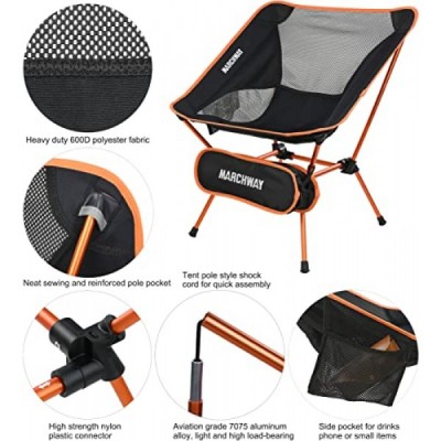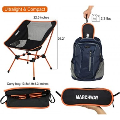 MARCHWAY Ultralight Folding Camping Chair, Heavy Duty Portable Compact for Outdoor Camp, Travel, Beach, Picnic, Festival, Hiking, Lightweight Backpacking (Orange)