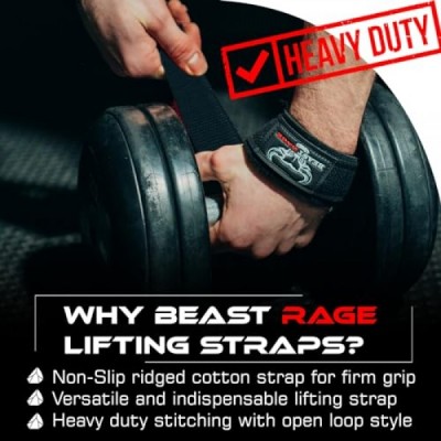 BEAST RAGE Lifting Straps for Weightlifting, Weight Lifting Straps Gym Power Workouts Lifting Wrist Straps Padded Cotton Men Women Support Lifters Deadlift Straps Hard Pull Exercise Straps