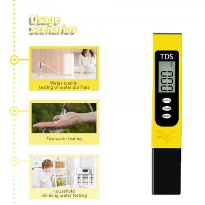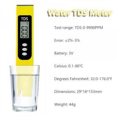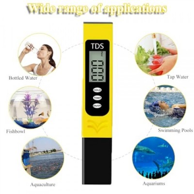 H4-TDS 미터 디지털 워터 테스터, 온도 EC TDS 미터 3 in 1, 수질 테스트 수경법 가정용 식수 수족관 등을위한 편리하고 정확한 측정 0-9990pm (노란색)