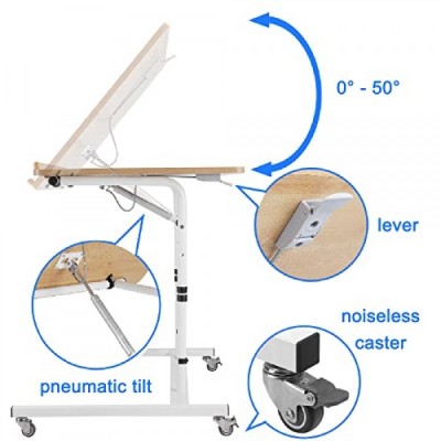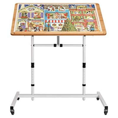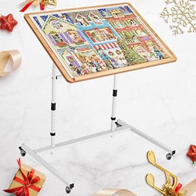 YISHAN Jigsaw Puzzle Table Rolling Cart for 500 1000 Piece Puzzles, Movable Lap Puzzle Board, Pneumatic Finger Touch Tilt Adjustment, Height Adjustable, Premium Rubber Wheels