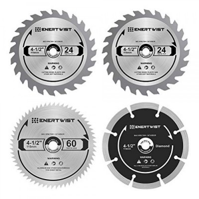 ENERTWIST 4-1/2 Inch Compact Circular Saw Blade Set, Pack of 4-Pieces TCT/HSS/Diamond Saw Blades Assorted for Wood/Plastic/Metal/Tile Cutting, 3/8in Arbor, ET-CSA-4