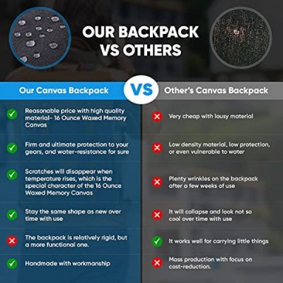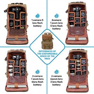 Camera Backpack - Weather Resistant 16 Ounces Waxed Memory Canvas – DSLR SLR Backpacks with 15.6” laptop sleeve compartment and Tripod Holder for Photographers -Vintage leather Style (Khaki)