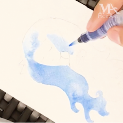 MozArt Supplies Water Brush Pens - Set of 6 Brush Tips Aqua pens - Great for Watercolor Paints, Water Soluble Pencils, Brush Pen, Markers - Refillable Brush Pens - Aqua Pen, Art Brushes