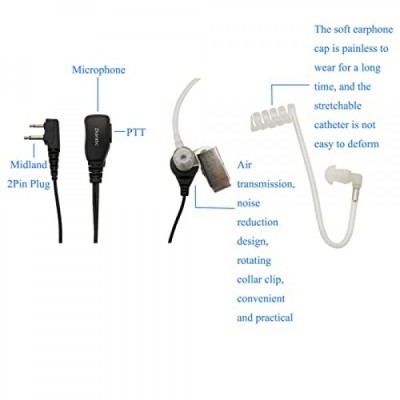 Walkie Talkies Earpiece with Mic 2 Pin Acoustic Tube Headset Compatible with Midland LXT600VP3 GXT1000VP4 LXT500VP3 GXT1050VP4 GXT1000XB GXT1030VP4 (2 Pack)