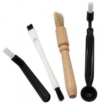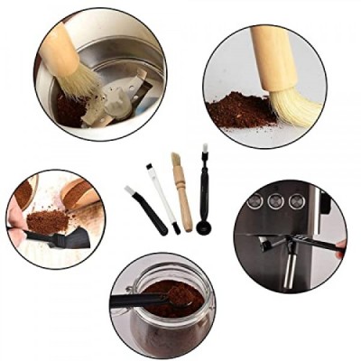 Kyuionty Coffee Grinder Cleaning Brush, Espresso Machine Brush Kit Wood Handle & Natural Bristles Wood Dusting Espresso Brush Set with Spoon for Bean Grain Coffee Tool (Pack of 4)